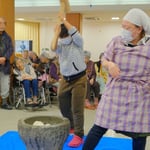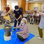 施設での餅つきが初めての新人職員さんや、フィリピンからの技能実習生も餅つき体験を楽しみ、