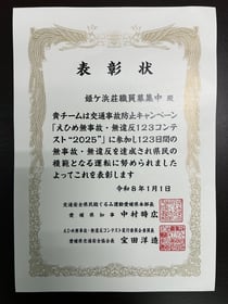 去年の年末に開催された「えひめ無事故・無違反123コンテスト’’2025’’」に職員が参加し
