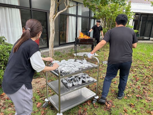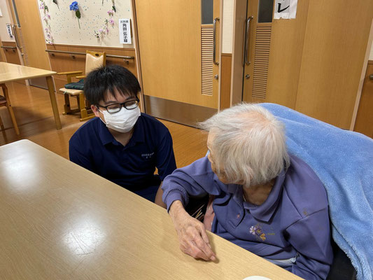 入所者さんとの交流やおやつ作りレクリエーション、施設内研修にも参加していただきました。