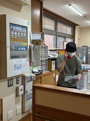 通報担当となった職員は消防署へ通報し住所、建物名、出火場所や人員の説明を実施していました。